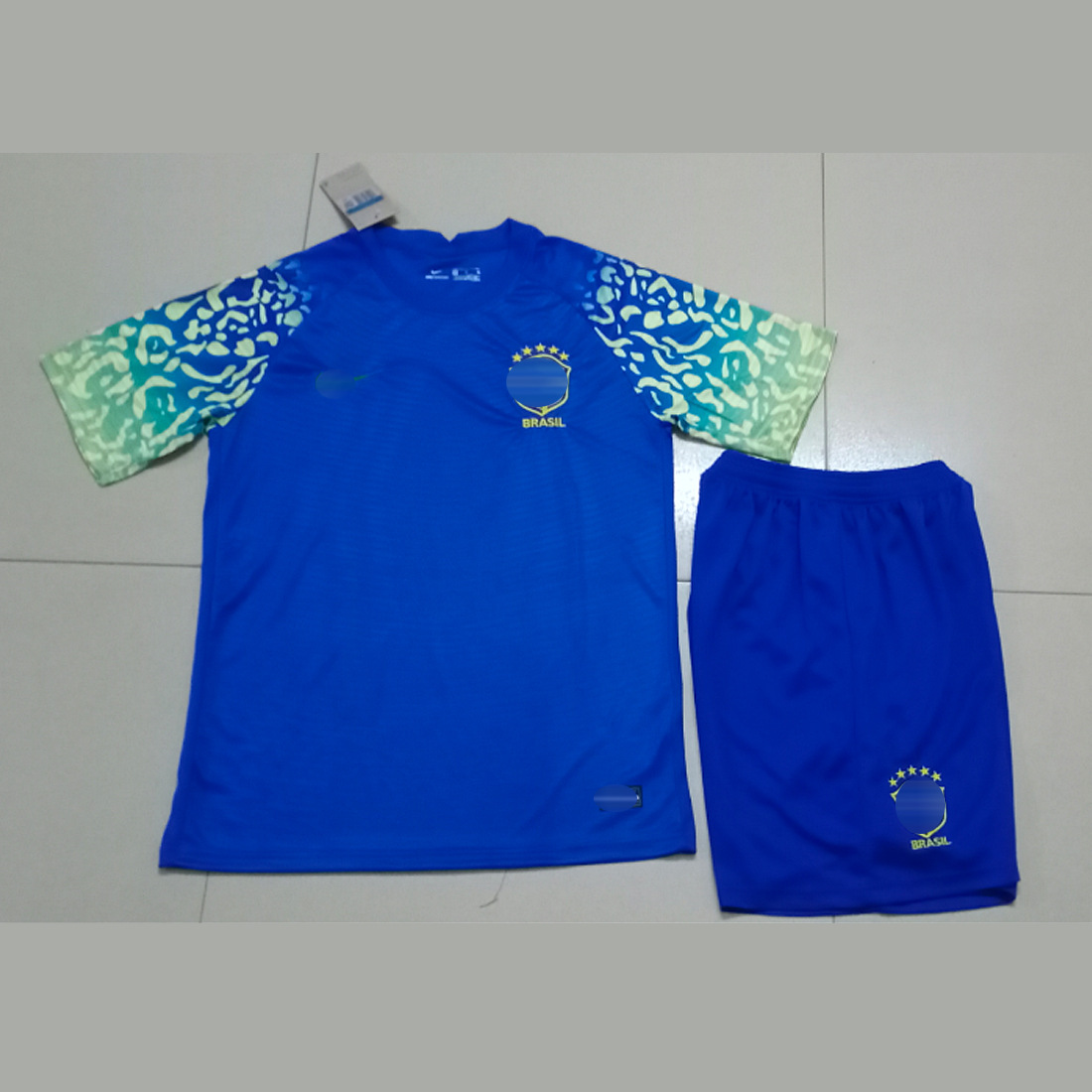 22-23世界杯巴西客场球衣蓝色套装国家队足球队服团购印号