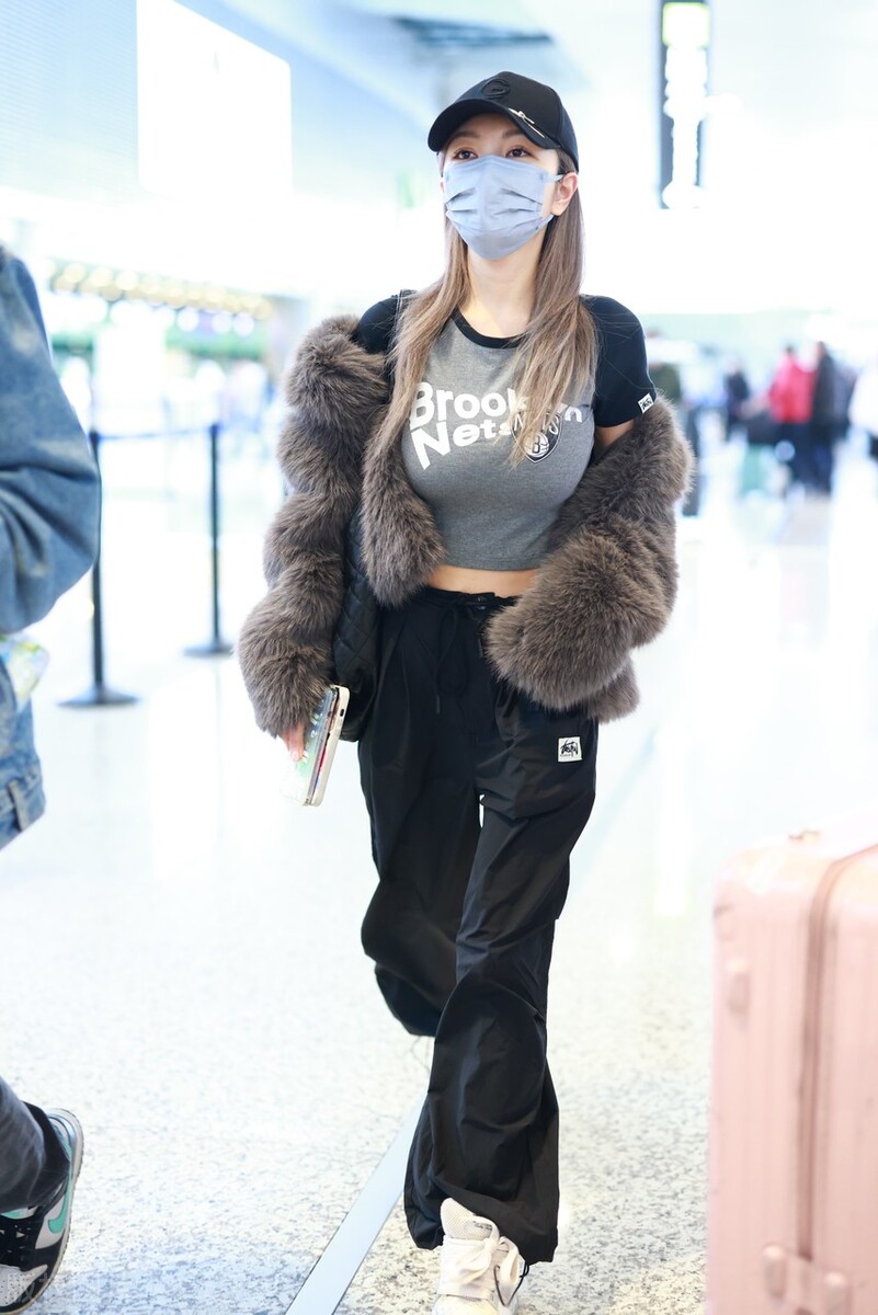 周扬青在机场的步态从容自信展现出时尚品味和个性魅力