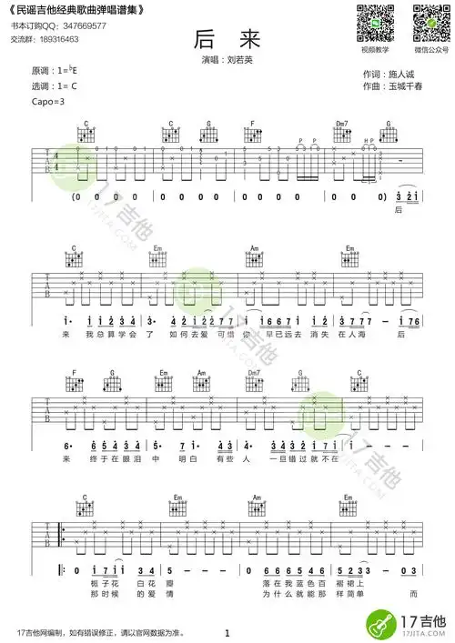 刘若英《后来》吉他谱_c调_高清六线图片谱_17吉他版_新手弹唱谱.jpg