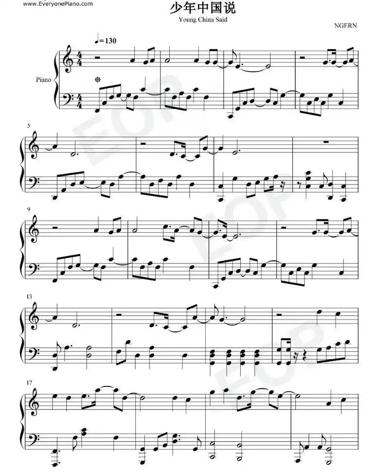 张杰少年中国说c调简易版