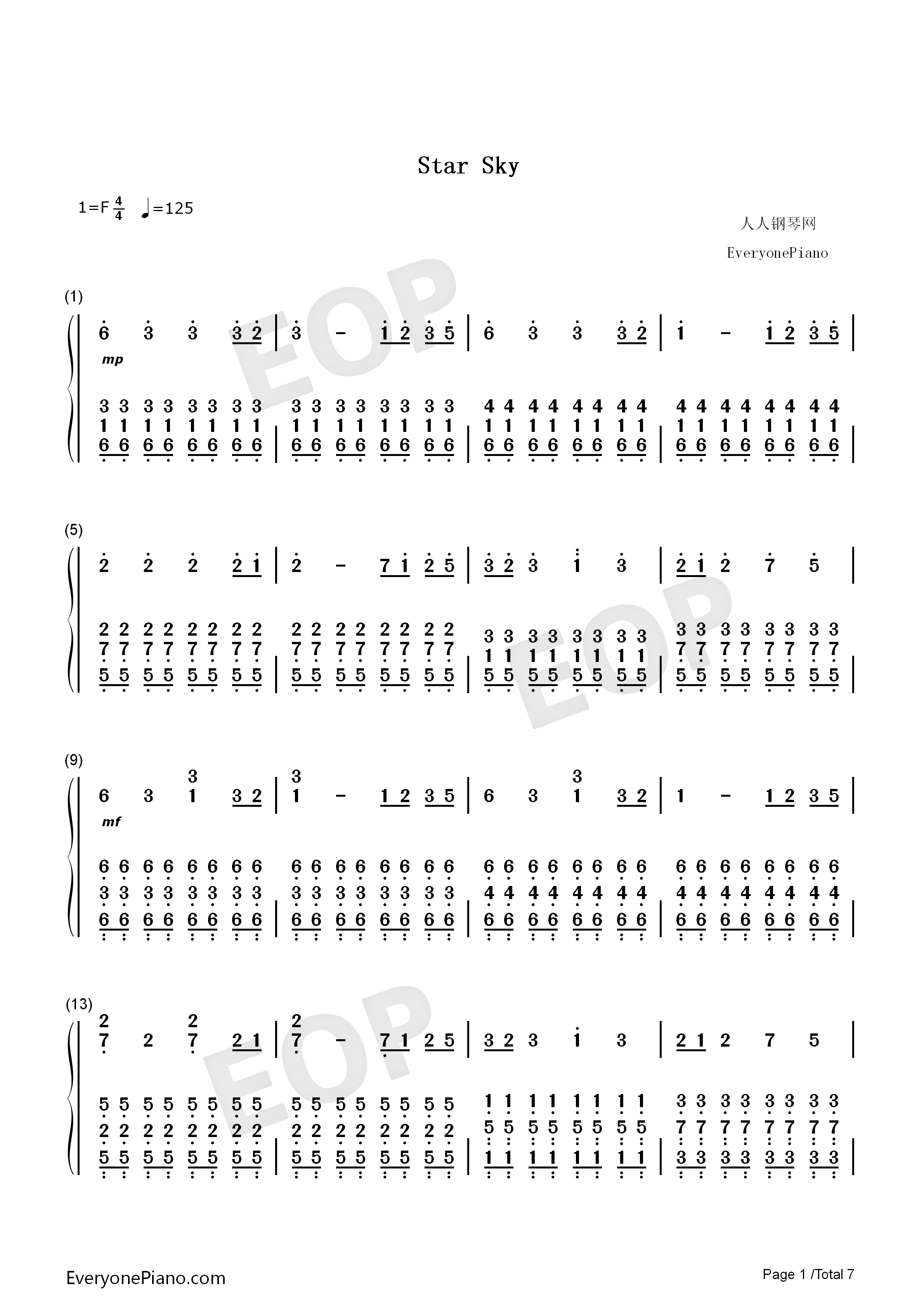 star sky-完美版双手简谱预览1-钢琴谱文件(五线谱,双手简谱,数字谱