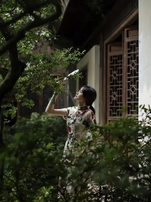 古镇小巷的旗袍女子