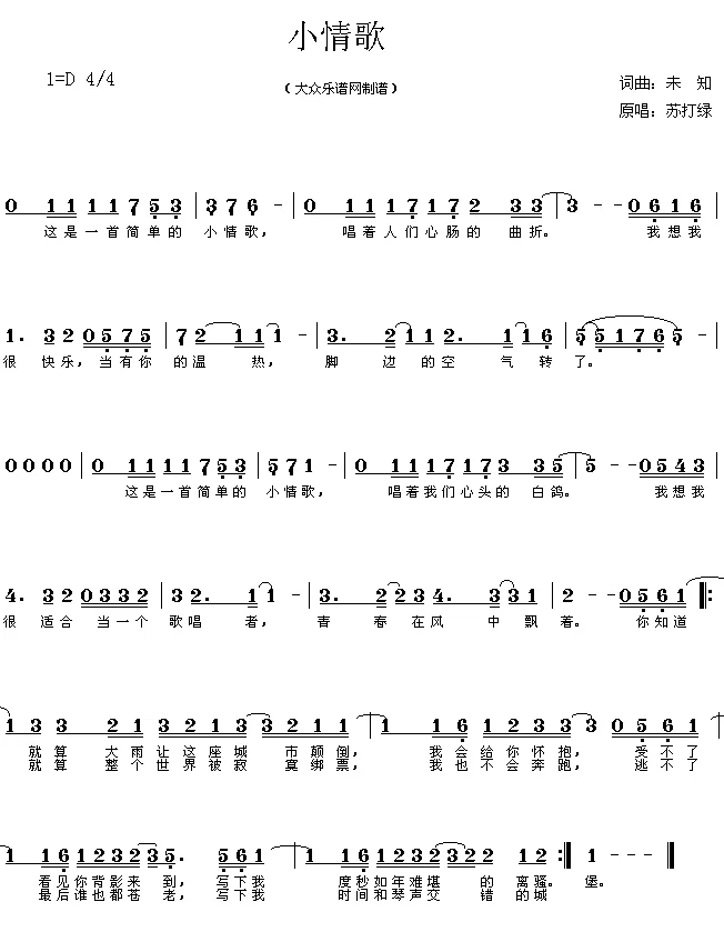 小情歌_歌谱简谱_哆来咪123曲谱网