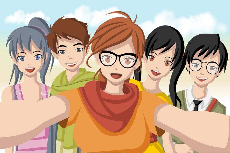 青少年们, 快乐的年轻人.聚会, 卡通矢量插图照片
