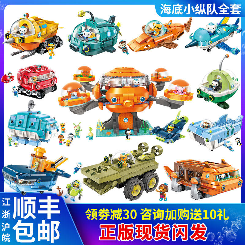 章鱼堡3708儿童拼装男孩益智玩具启蒙海底小纵队积木乐高舰艇套装