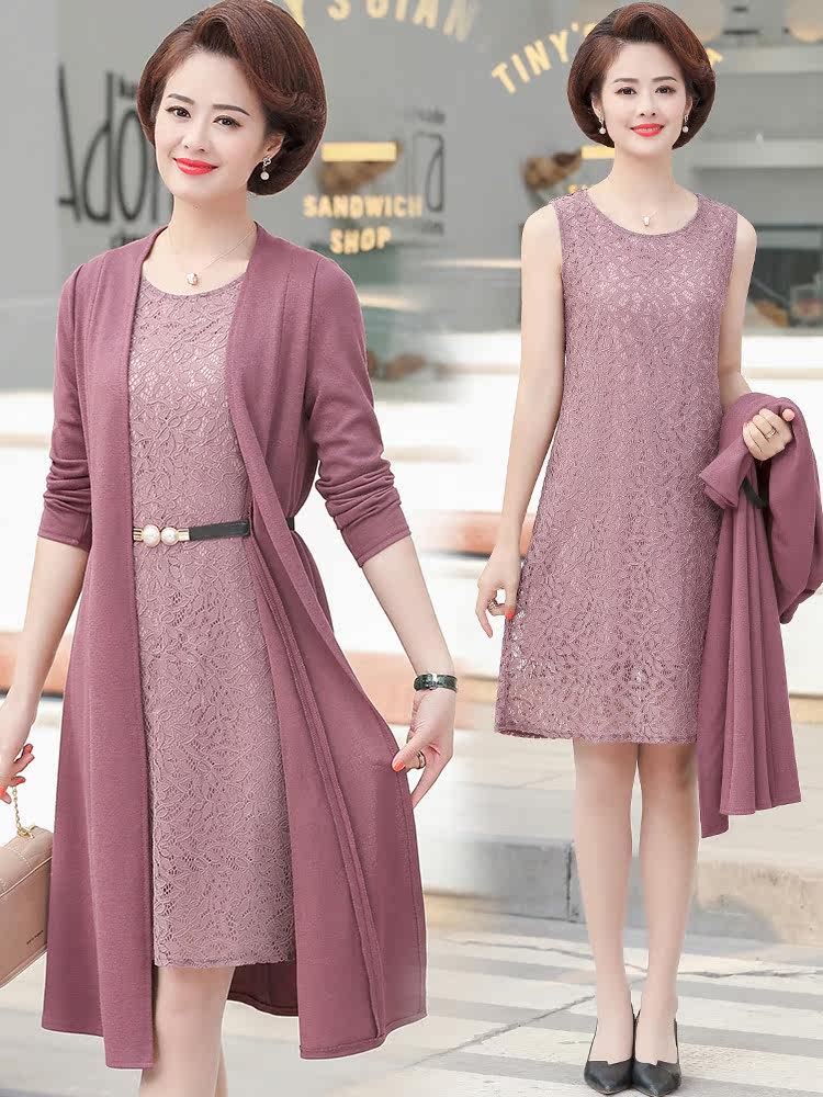 年轻妈妈夏装气质洋气连衣裙子中老年春秋高贵两件套中年女装40岁