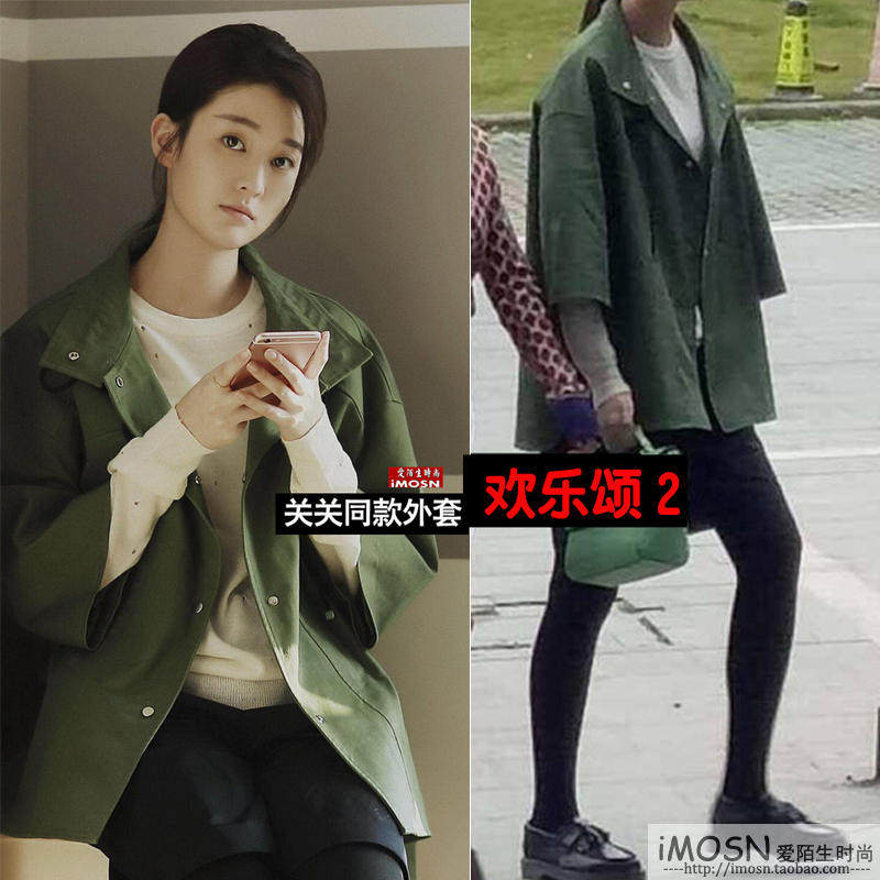 特价夏乔同款衣服_欢乐颂2关雎尔乔欣关关同款外套七分袖军绿色直筒