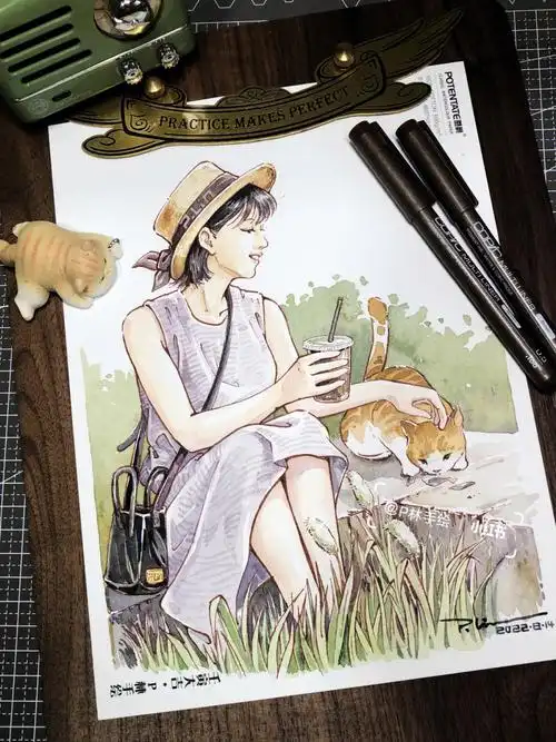 【水彩插画】钢笔淡彩人物手绘