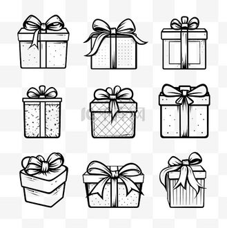 手绘线描矢量礼包礼盒免抠