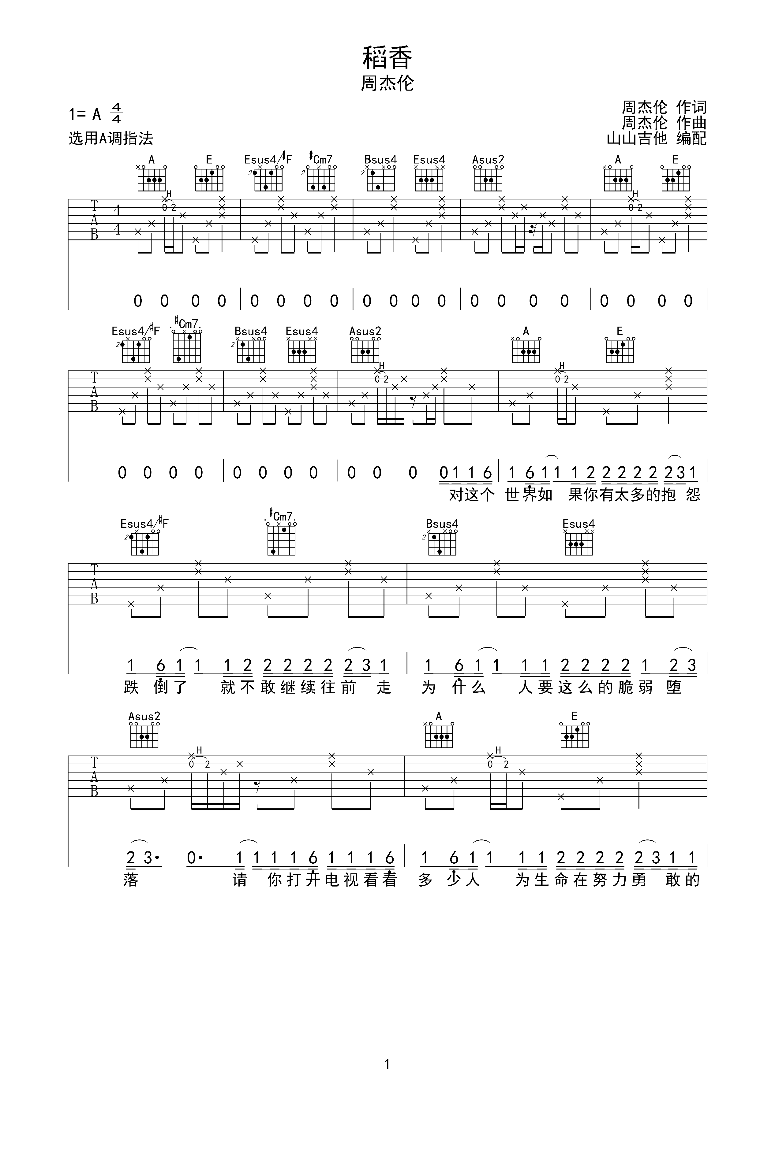 稻香a调六线pdf谱吉他谱-虫虫吉他谱免费下载