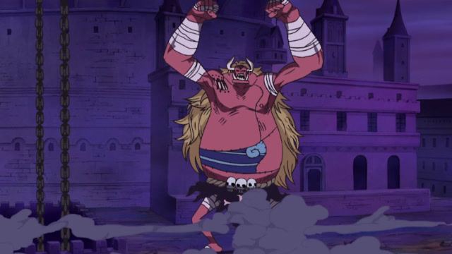 奥兹身形巨大,长相怪异,在500年前冻死后,尸体被影影果实能力者莫利亚