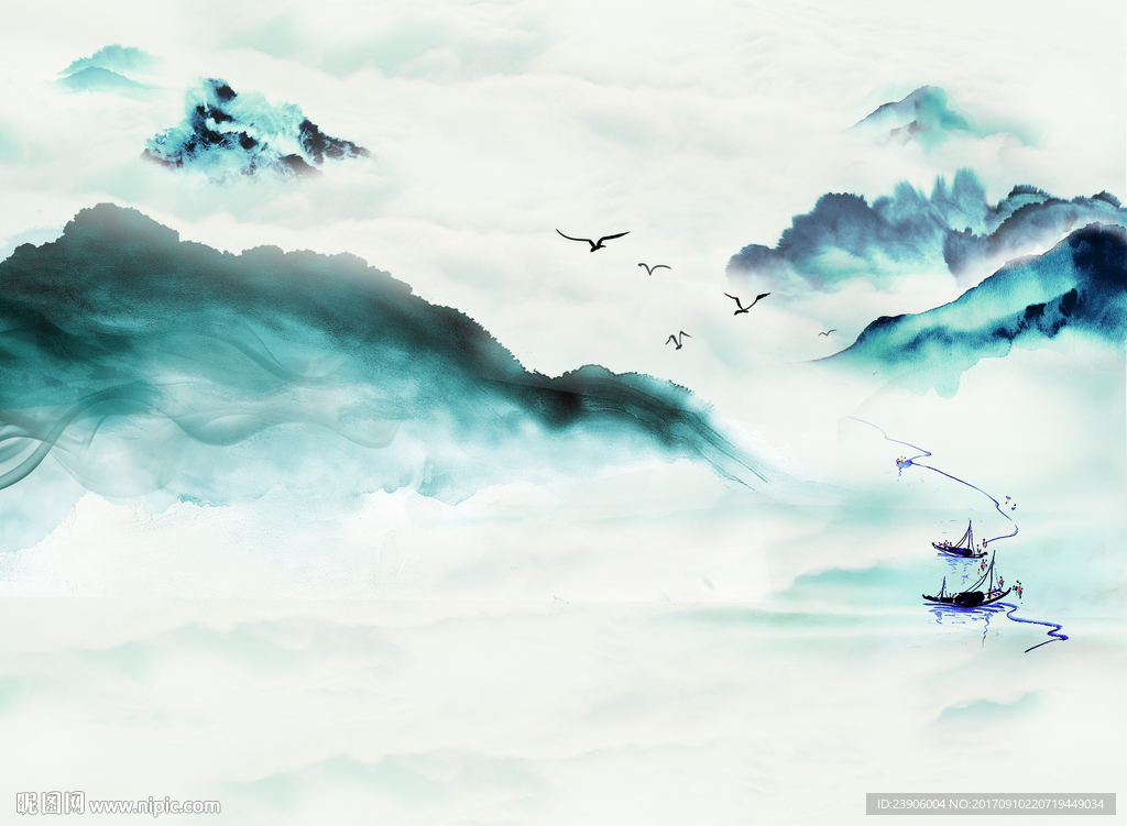 艾尔兰墙布无缝背景墙壁画新中式后大气山水简约北欧山峰客厅卧室沙发
