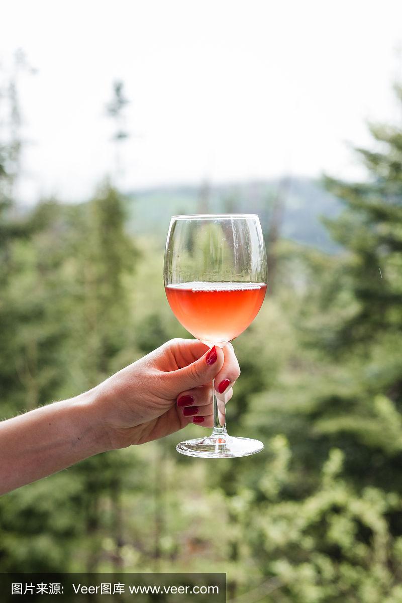 女人手里拿着一杯红酒