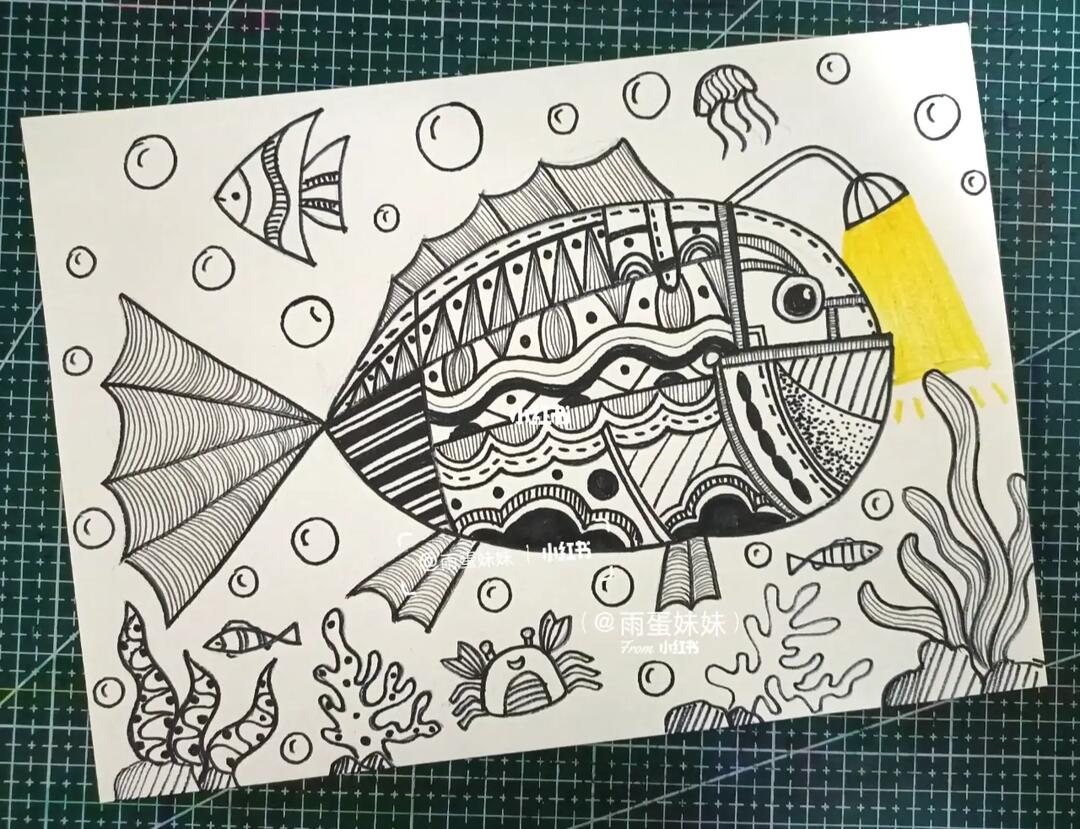 线描 #创意美术儿童画 #斗鱼 #少儿创意美术