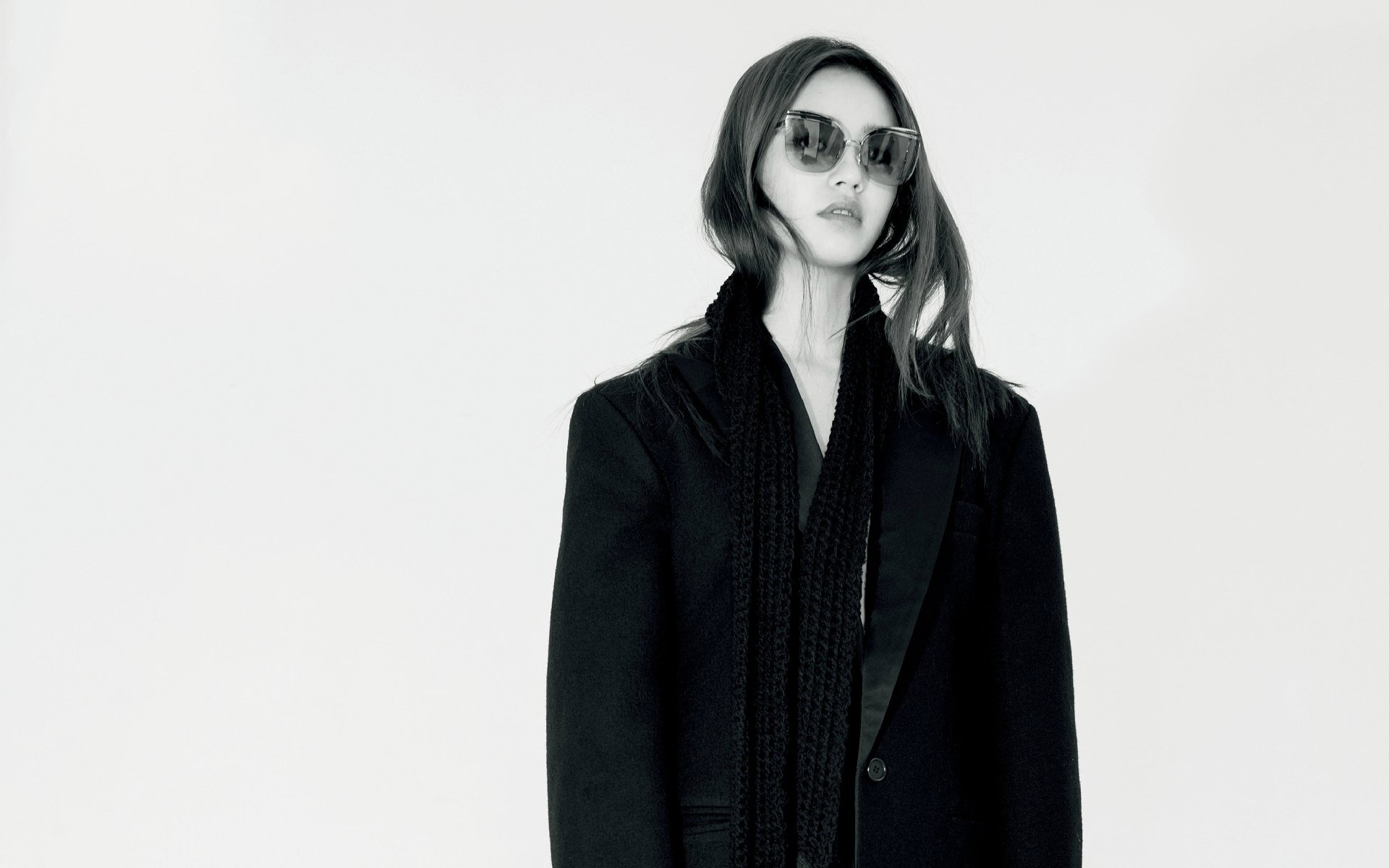 年轻的女孩,严肃的表情黑白照片,高清图片,壁纸 - 酷酷桌面