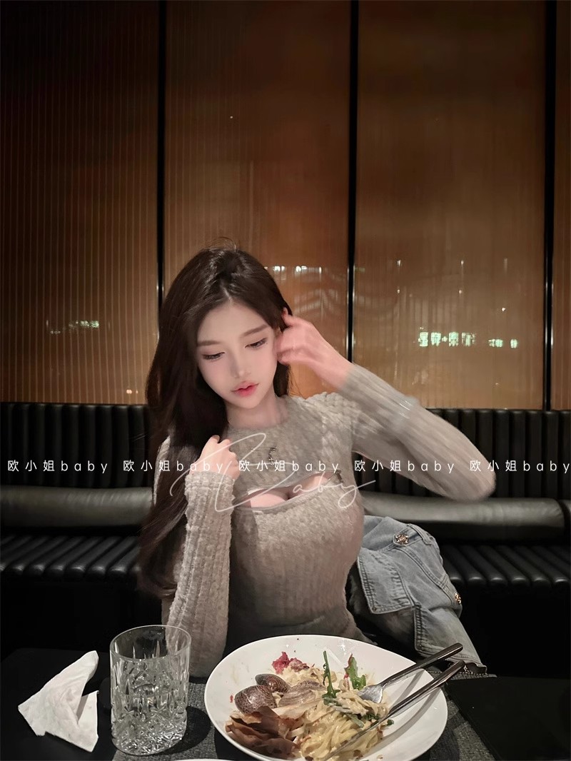 网红直播女装气质显胸大女主播诱惑装清纯毛绒绒针织衫女绑带毛衣