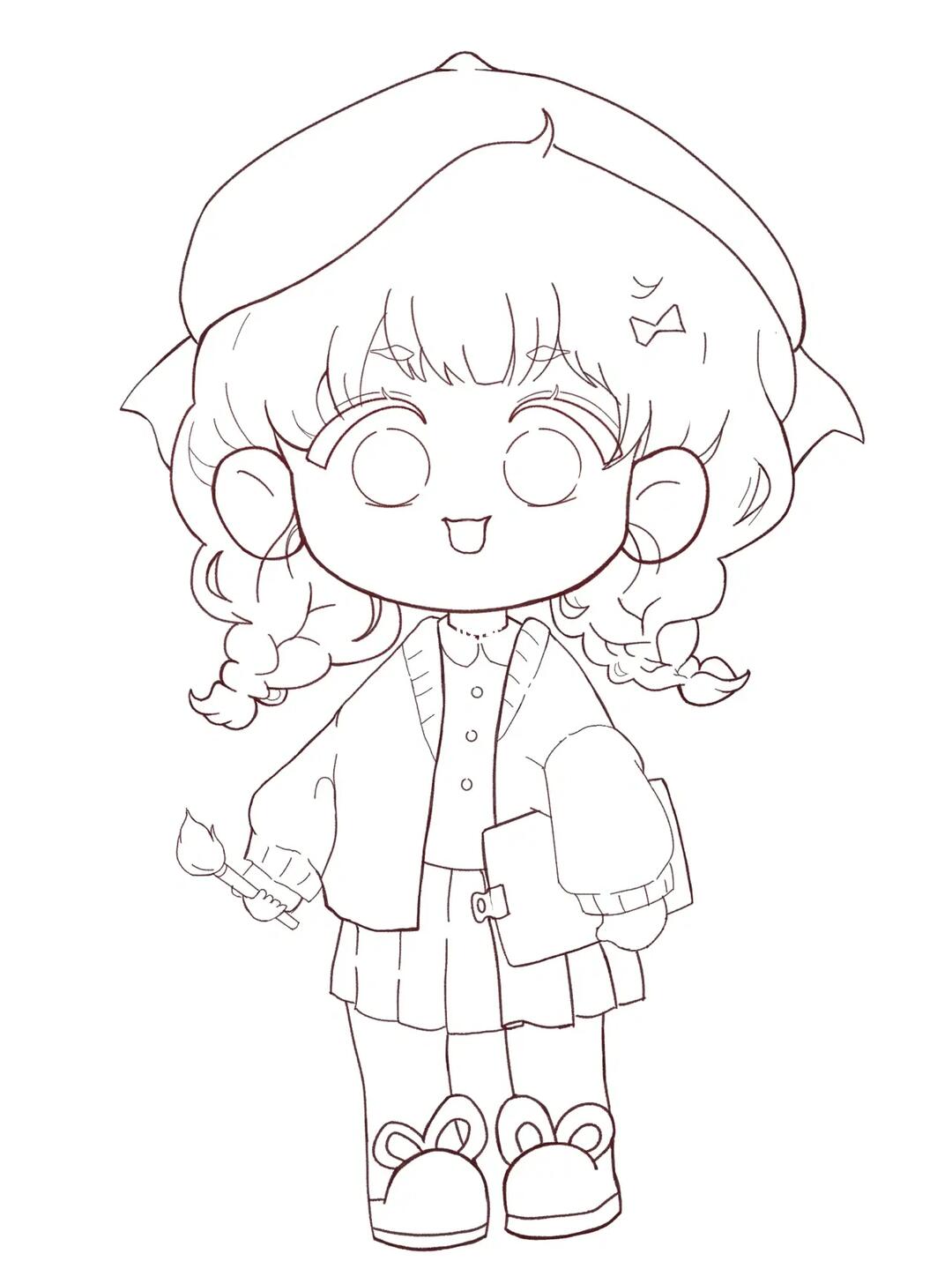 线稿#漫画卡通人物绘画 平面 灵感 素材 二次元 高清白底大图