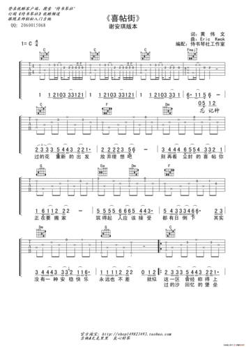 谢安琪《喜帖街》高清吉他谱完美版(吉他六线谱)_简谱