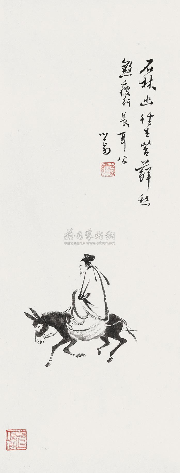 4406骑驴图镜心水墨纸本