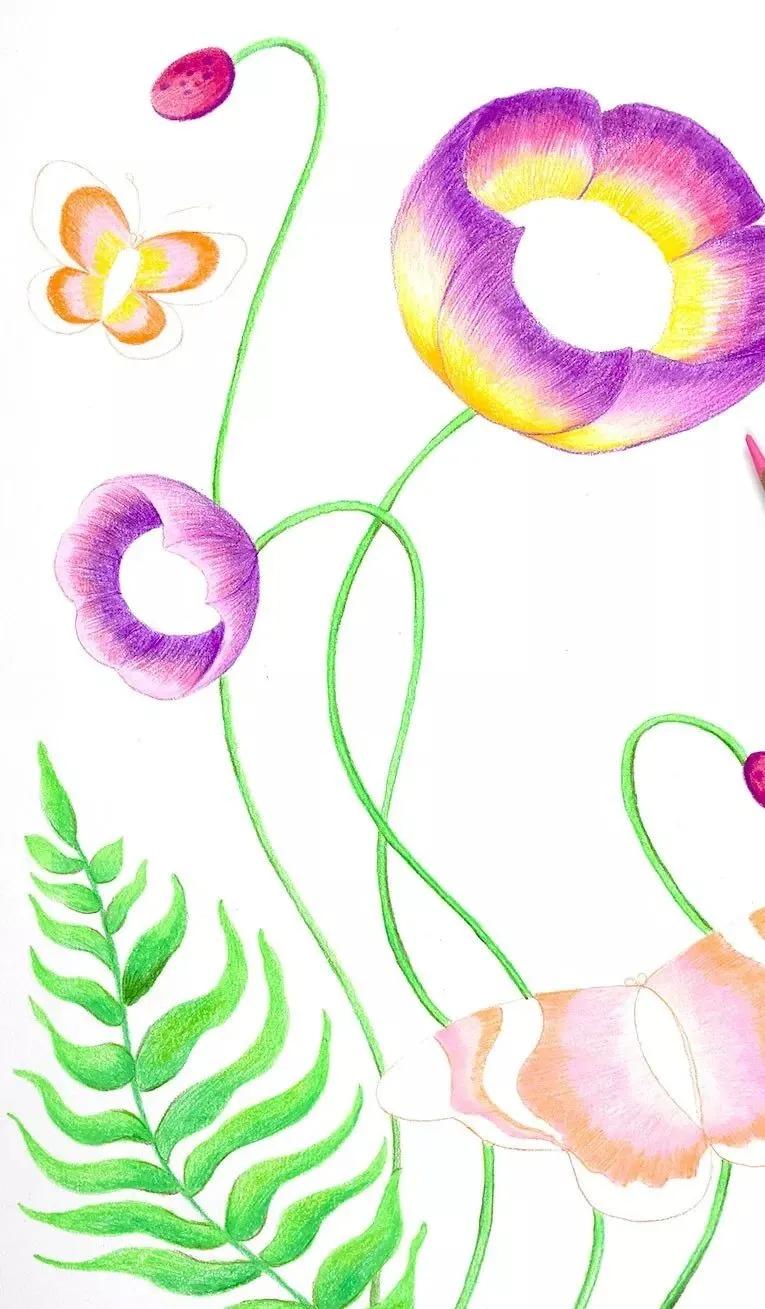 彩铅画初学者花