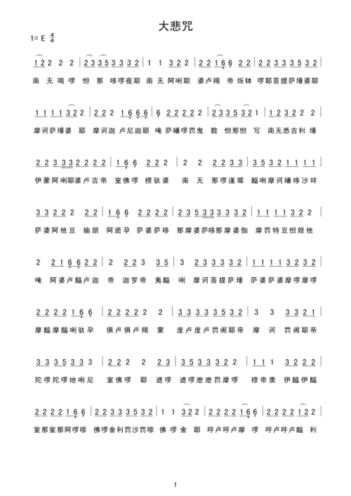 大悲咒歌词简谱第1页