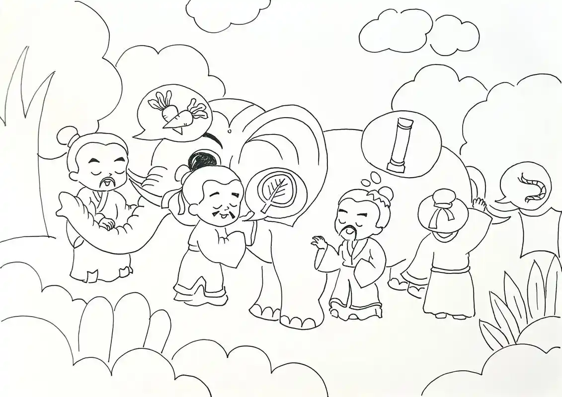 主题简笔画:《盲人摸象》