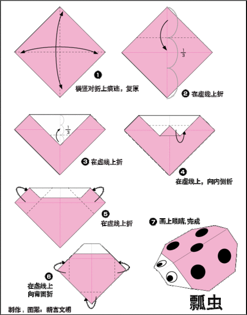 儿童折纸可爱七星瓢虫的折法图解步骤