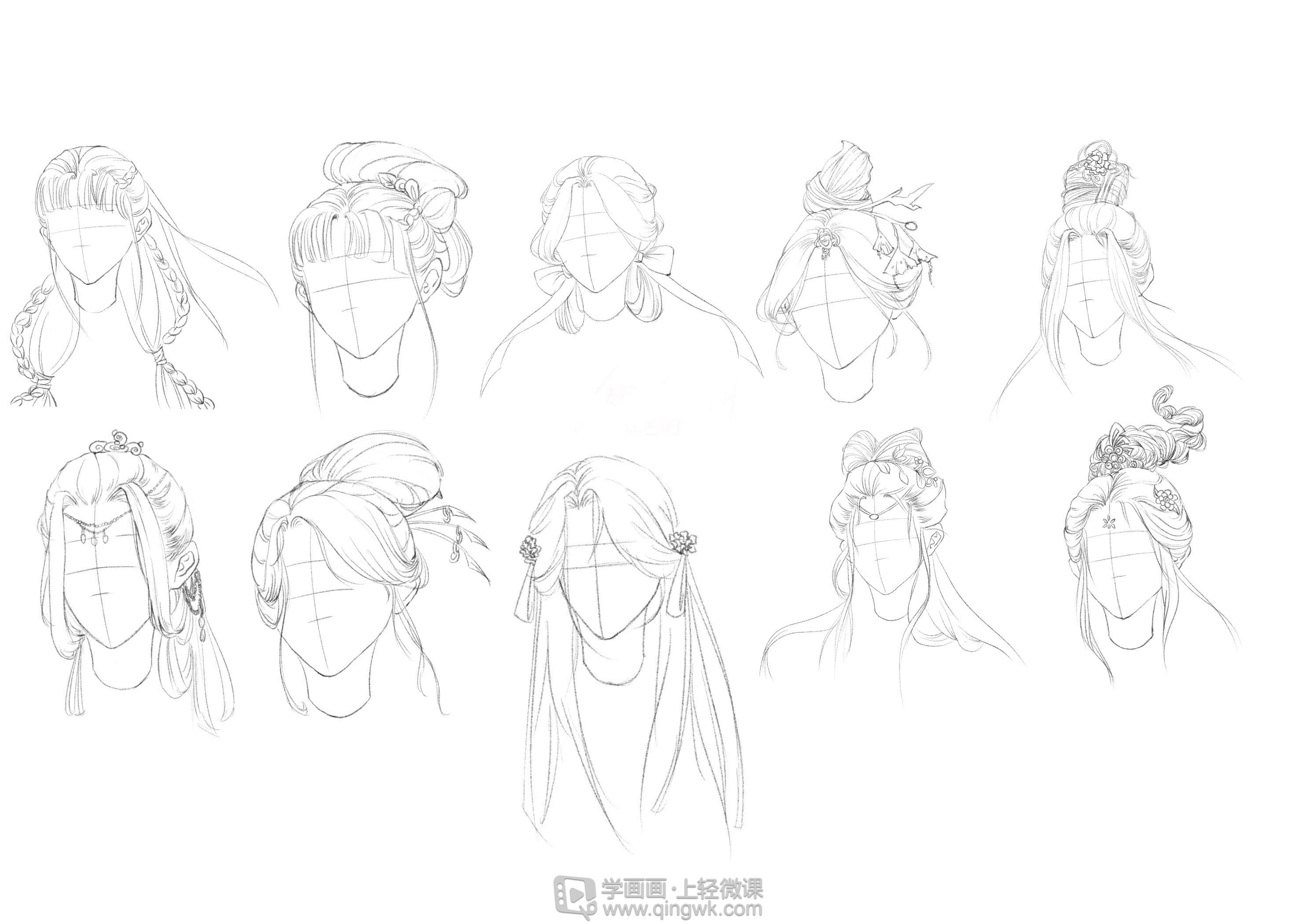 女生古风发型线稿练习合集03