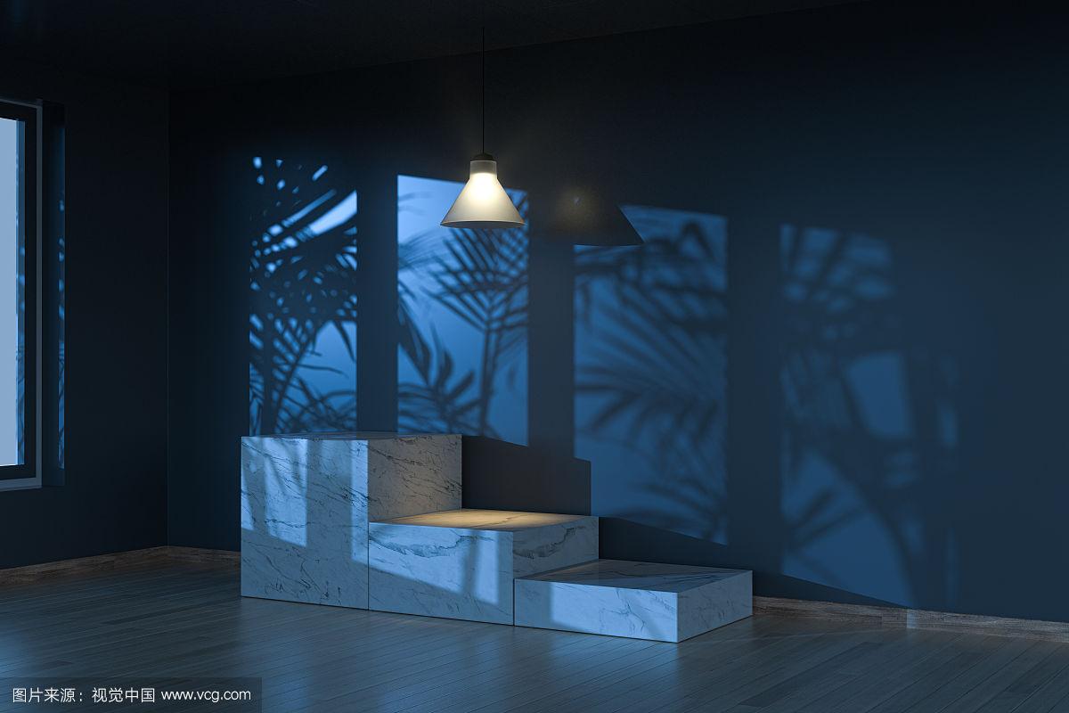夜晚室内的吊灯与墙面 三维渲染