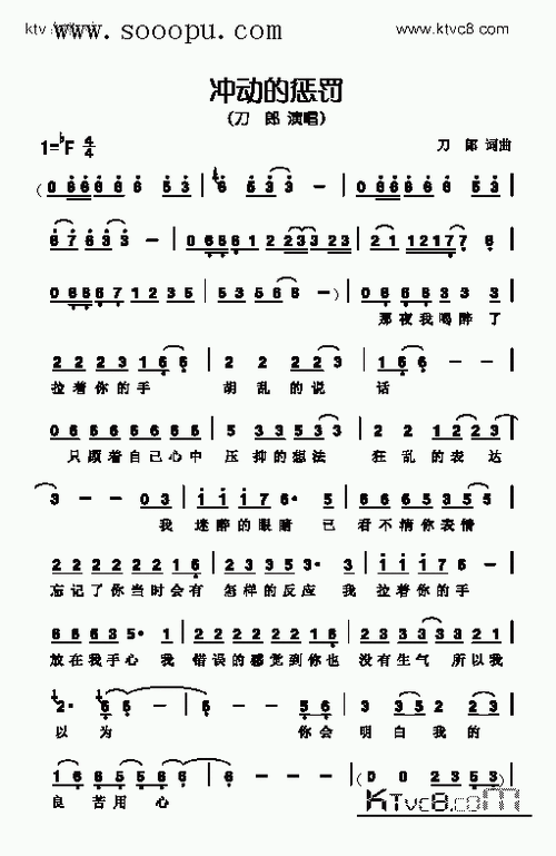 《冲动的惩罚》(刀郎演唱)_歌谱简谱_歌词简介_曲谱资料