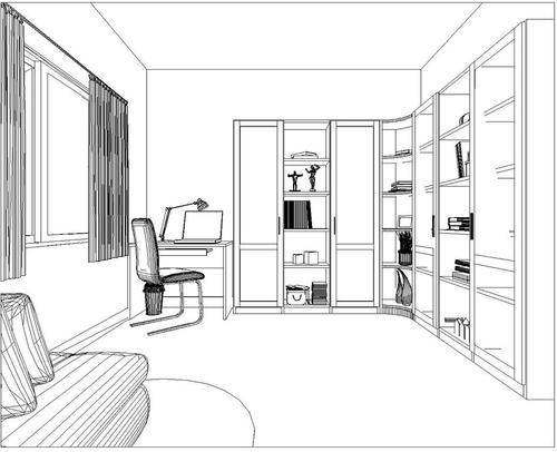 书房透视图手绘图片素材