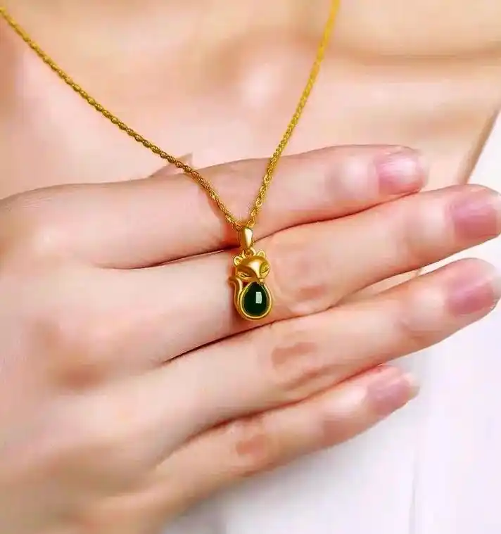 新疆和田玉籽料羊脂玉原皮18k金包镶吊坠工艺品项链厂家一件代发