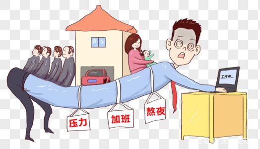 手绘卡通背负压力前行的男人插画免抠元素