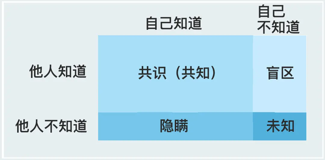 他人不知"这两个维度,可以把窗子分为四个象限:公开象限,隐私象