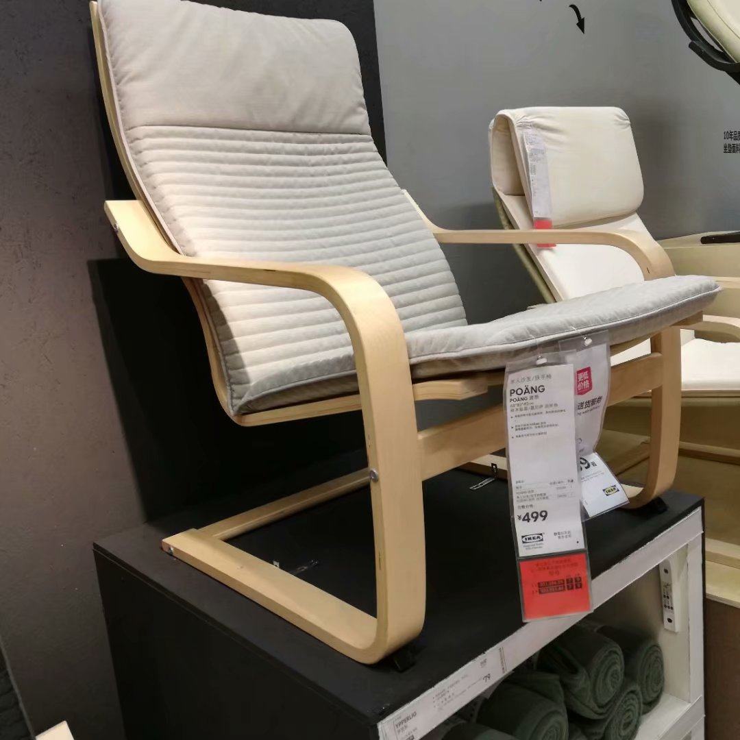 京选品质ikeapoang波昂单人扶手椅休闲椅阳台休息椅子布艺可拆洗米