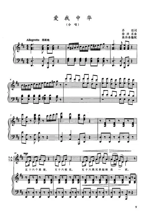 爱我中华(合唱)(钢伴谱)_钢琴谱_搜谱网