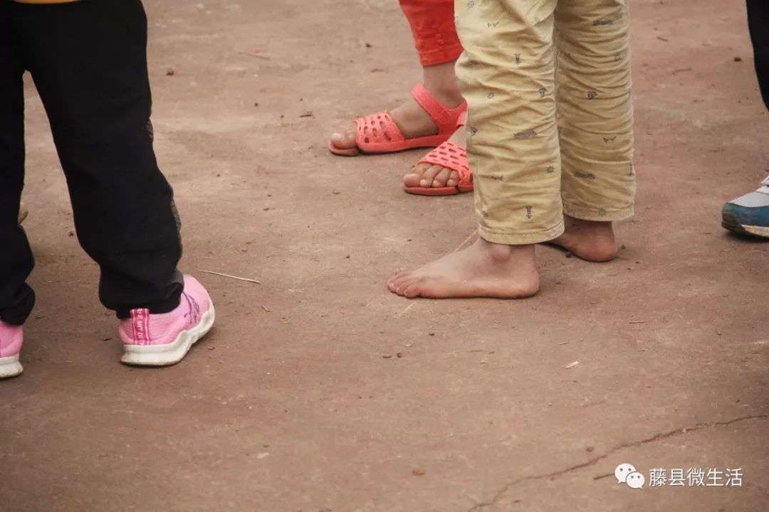 四川省华蓥山区高兴镇高峰岩村小学校的孩子光着脚丫上学