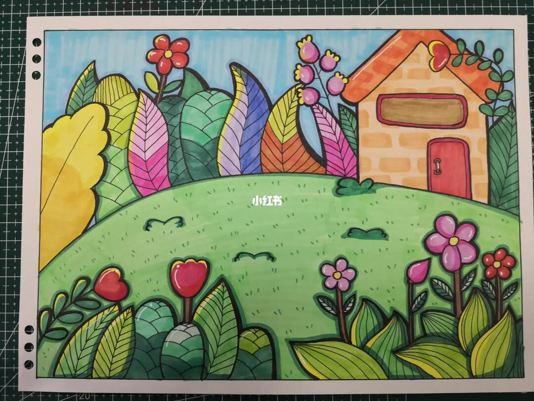 儿童画万能场景 春天 夏天 户外场景 9615线稿 #创意美术儿童画