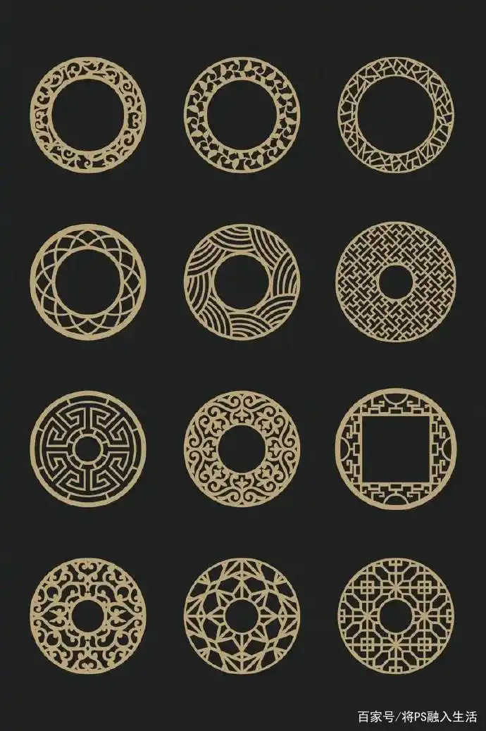 国风古风纹样烫金花纹png元素