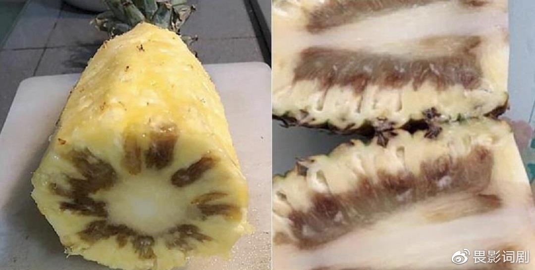 台湾地区外销日本的凤梨质量不佳底部发霉切开是黑心
