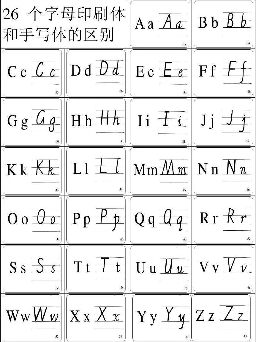 26个字母印刷体和手写体的区别