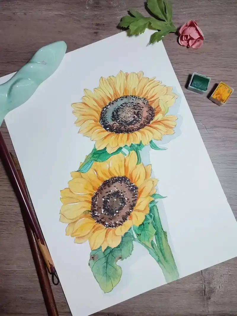 8开的水彩向日葵