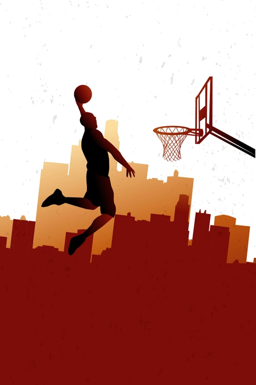 竖版篮球运动人物抽象背景矢量插画无字