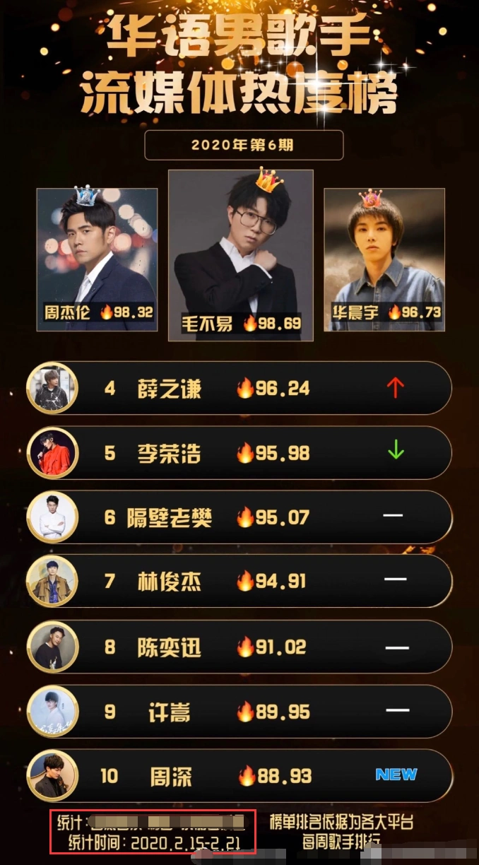 虎扑最喜爱男歌手出炉,肖战未进前十,林俊杰第二,榜首实至名归
