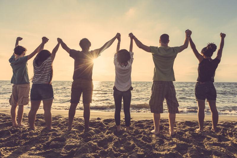 白天,白色背景,友谊,欧洲,欧洲人,许多人,背光,背面,托,站着,一群人