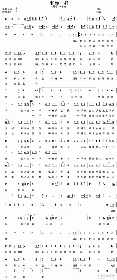 《和你一样》合唱谱 简谱 二声部 童声合唱 这首歌是表达"鼓励那些在