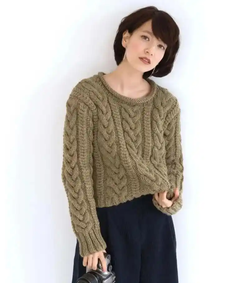 短款粗毛线麻花毛衣女秋冬慵懒高腰宽松复古针织开衫外套学生上衣