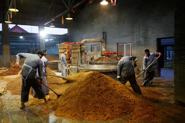 近日,在衡水老白干集团酿酒车间内,工人们在进行酿酒作业.