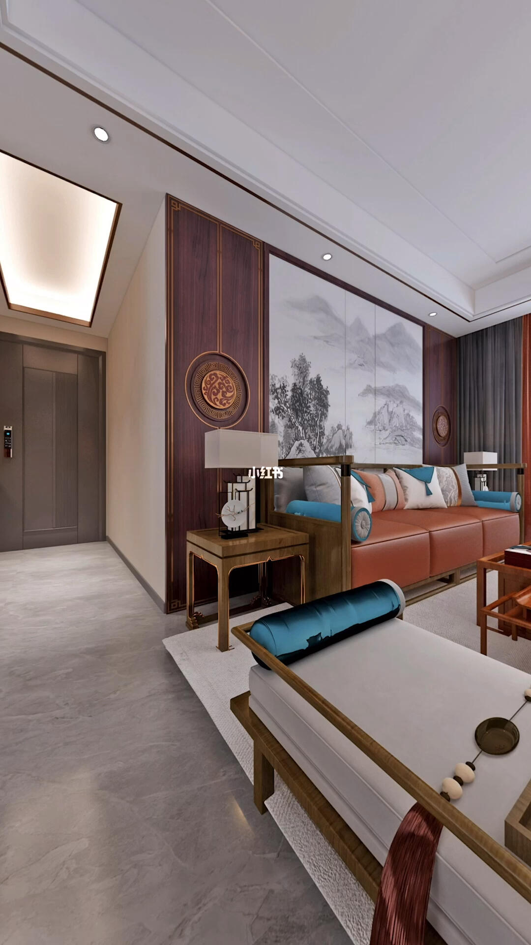通过采用中式元素与现代材质的巧妙兼柔的布局,展现出古典雅致的空间
