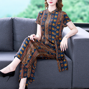 阔太太太夏装两件件套中年妈妈套装四十岁女装时尚套装